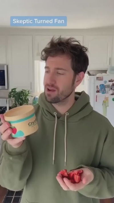 It's the crunch.Regular dried fruit (dehydrated) is chewy, sticky, and loses 40% of its nutrients. Freeze-Drying uses NASA-grade vacuums to keep 99% of vitamins intact while transforming the texture into a light, airy, "popcorn-like" crunch. Zero stickiness.